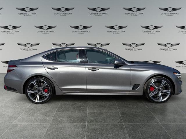 Introducing the 2026 Genesis G70 3.3T Sport AWD in a striking silver finish with an automatic transmission for seamless driving. Engineered with a powerful 3.3L 6-cylinder engine this luxurious sedan promises exceptional handling with its all-wheel-drive system perfect for tackling Canadian roads in any condition. The exterior captivates with sleek alloy wheels enhancing both style and performance while inside the dynamic red leather provides an opulent setting. The interior is thoughtfully designed with premium materials including leather seats and accents such as a leather/Chrome gear shifter and leather door trim insert. Tech enthusiasts will appreciate the built-in navigation system smart device integration and a head-up display that keeps vital information within easy reach. Driving is a pleasure with features like adaptive cruise control and a comprehensive suite of safety options including lane assist and parking sensors ensuring peace of mind no matter where your journey takes you. Perfect for those who appreciate luxury and performance this sedan is ideal for tech-savvy drivers and professionals seeking a vehicle that makes a statement. With convenience features such as remote start keyless entry and a cooled/heated seat configuration the G70 is ready for every adventure. Contact our dealership today to experience this masterpiece for yourself and make it part of your life.