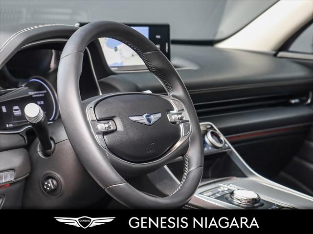This 2024 GV80 2.5T Advanced is the top of the line package for the 4 cylinder 2.5T option. It represents a great entry point to a GV80 yet is still equipped with a long list of standard features that include the following -2.5L turbocharged inline 4-cylinder engine (300 hp 311 lb-ft) -All-Wheel Drive (AWD) with Terrain Mode Select -8-speed automatic transmission with steering wheel shift paddles -5-passenger seating -20'' aluminum alloy wheels with Michelin all-season tires -Genuine leather seating -Quad LED headlights with LED taillights side repeaters and reverse lights -Panoramic sunroof -Highway Driving Assist High Beam Assist Rear Cross-Traffic Collision-Avoidance Assist Forward Collision-Avoidance Assist and Intelligent Speed Limit Assist -Smart Cruise Control -14.5'' touch-screen navigation system -Head-Up Display (HUD) -Surround View Monitor -Blind-Spot View Monitor (BVM) -Premium Audio with 12 Speakers -Proximity keyless entry with push button start and remote engine start -Proximity-activated hands-free tailgate opening -Wireless charging -Heated leather steering wheel -Heated front seats and rear seats -Ventilated front seats -Rear occupant alert -Three-zone automatic climate control -Self-leveling rear suspension -Genesis Connected Services We are confident your shopping experience with us will be a luxury experience with our ''no pressure'' sales team who are here to help you make the right choice. We are conveniently located at 332 Ontario Street in St.Catharines right off the QEW. We look forward to having you here and experiencing the Genesis difference. **Free Carproof online! Specialist onsite for all credit approvals!**