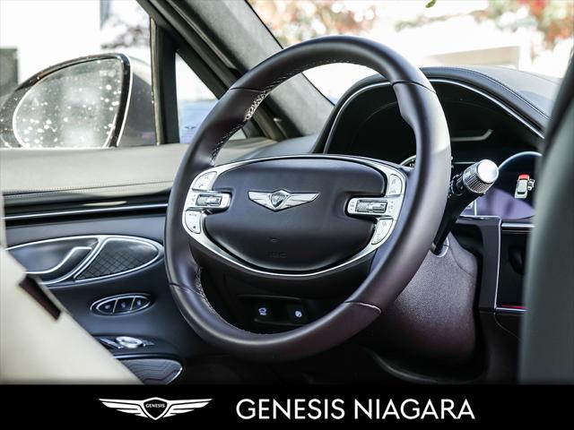 This 2025 GV70 2.5T Prestige is the top package with the 2.5T Engine Option. This GV70 is powered by a 2.5 Liter Turbo 4 Cylinder that makes an incredible 300HP and 311ft.lb of torque. Its road presence is made recognizable by the 21'' beautiful alloy wheels with Michelin all-season tires that are equipped on this GV70. This vehicle has many nice features such as Adaptive Cruise Control Highway Driving Assist Lane Keeping Assist Forward Collision Avoidance Head-Up Display (HUD) Surround View Monitor Blind-Spot View Monitor (BVM) 12.3'' 3D TFT LCD digital instrument cluster Nappa leather seating with quilting 14.5'' touch-screen navigation system Proximity-activated hands-free tailgate opening Heated leather steering wheel Heated and Ventilated front seats All-Wheel Drive (AWD) with Terrain Mode Select 8-speed automatic transmission with steering wheel shift paddles We are confident your shopping experience with us will be a luxury experience with our ''no pressure'' sales team who are here to help you make the right choice. We are conveniently located at 332 Ontario Street in St.Catharines right off the QEW. We look forward to having you here and experiencing the Genesis difference. **Free Carproof online! Specialist onsite for all credit approvals!**