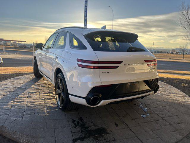 This Genesis GV70 boasts a Twin Turbo Premium Unleaded V-6 3.5 L/212 engine powering this Automatic transmission. UYUNI WHITE ULTRAMARINE BLUE NAPPA LEATHER SEATING SURFACES Window Grid Antenna.* This Genesis GV70 Features the Following Options *Wheels: 21" x 9.0J Dark Sputtering Aluminum -inc: Sport design Valet Function Trip Computer Transmission: 8-Speed Automatic -inc: shift-by-wire paddle shifters and drive mode select (comfort eco sport sport plus and custom) Transmission w/Oil Cooler Tracker System Tires: 255/40R21 AS Tire Specific Low Tire Pressure Warning Strut Front Suspension w/Coil Springs Steel Spare Wheel.****Payments O.A.C.*The advertised price does not include GST. Discounts may include available manufacturer discounts and/or incentives. Discounts and/or incentives from both the dealership and manufacturer may have certain criteria for eligibility and must be qualified for depending on the nature of the discount and model of vehicle involved. Discounts offered by the manufacturer have discrete legal regulations available on the corresponding manufacturer site. See dealer for all current discount eligibility details. Vehicle data is subject to change without notice. AMVIC Licensed Dealer.